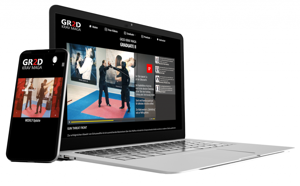 Mit GR2D© Mobile und E-Learning Plattform bist Du bestens unterstützt. KRAV MAGA - Alle Techniken, Videos, Trainingspläne – immer griffbereit in unserer App und im E-Learning-Portal.